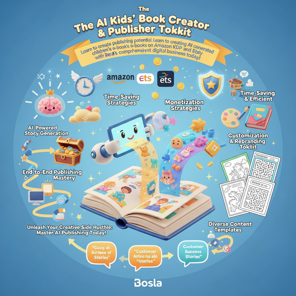 Tired of trading time for money? Ready to tap into the booming, affordable market for children's educational content? Bosla brings you the AI Kids' Book Creator & Publisher Toolkit, the innovative platform that puts publishing power directly in your hands.